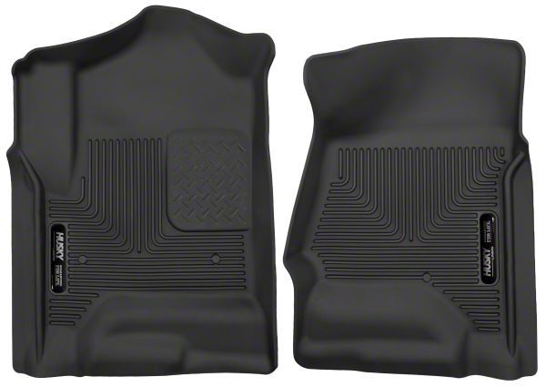 Floor Protection. The Husky X-Act Contour Front Floor Liners give your GMC Sierra the style and protection it needs. Made from rubberized DuraGrip material, these black floor liners are precision-cut for an exact fit. Its StayPut Cleats hold the liners tightly in place whether your truck flooring is made of vinyl or carpet.