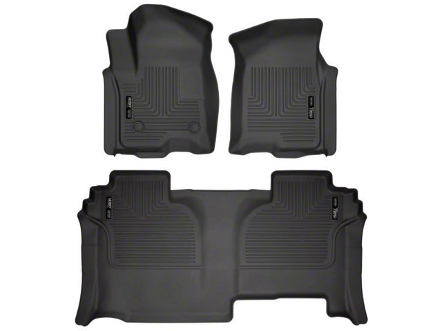 Application. This set of Husky WeatherBeater Front & Second Seat Floor Liners; Black has been designed for 2019-2025 Silverado 1500 Double Cab models.