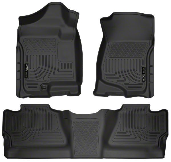 Application. These Husky WeatherBeater Black Front and Second Seat Floor Liners with Footwell Coverage fit all 2007 to 2014 Chevrolet Silverado 2500HD Crew Cab models.