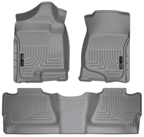 Application. These Husky WeatherBeater Gray Front and Second Seat Floor Liners with Footwell Coverage fit all 2007 to 2014 Chevrolet Silverado 2500HD Crew Cab models.
