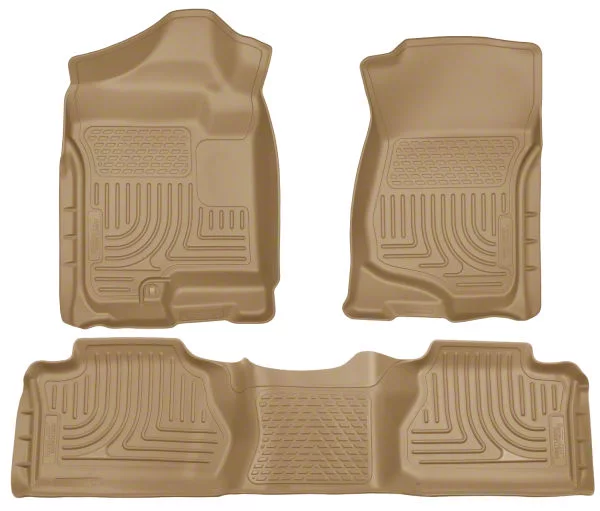 Protect Your Footwell. If you regularly take your Silverado 2500HD out on the trail, you need these Husky WeatherBeater Tan Front and Second Seat Floor Liners with Footwell Coverage. These floor liners are engineered to keep your front and rear footwells protected from spills, moisture, and tracked in mud. This is achieved by combining a wide coverage design with waterproof construction and a spill-trapping surface. This way, you can enjoy all your off-road adventures and not worry about spoiling your factory carpet.