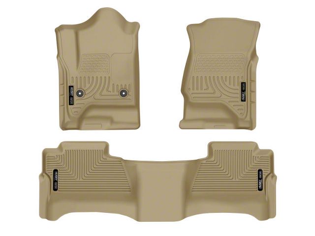 Application. These Tan Husky WeatherBeater Front and Second Seat Floor Liners with Footwell Coverage are designed to fit all the 2015-2019 Chevrolet Silverado 2500HD Crew Cab models.