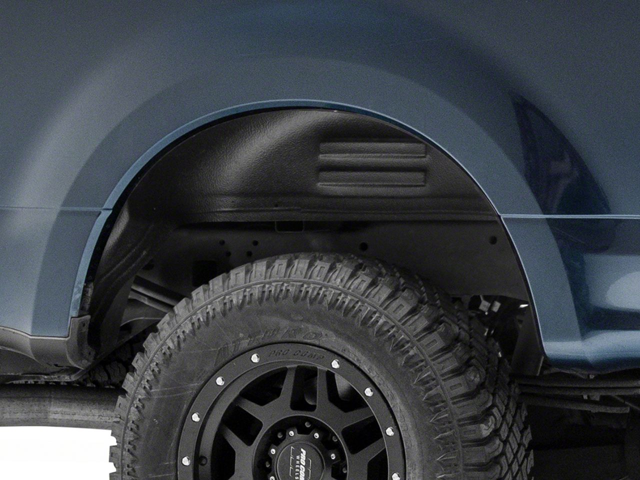 Underbody Protection. If you take your Super Duty off-road to get to the camp or job site and you're tired of the road grime and mud getting into hard to clean areas, consider adding these Husky Rear Wheel Well Guards; Black. This pair of Wheel Well Guards will provide protection to your exposed shocks, frame and other vulnerable underbody components from debris, mud, rocks and salt. Not only will these guards provide extra protection, but they also enhance the appearance of your Ford's wheel wells with their smooth black finish.