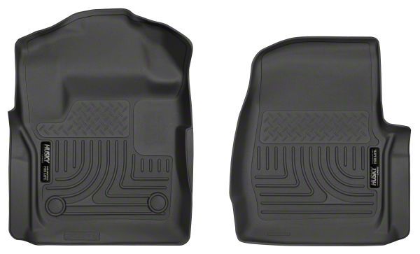 Excellent Coverage. Get amazing interior coverage with Husky's WeatherBeater Front Floor Liners; Black in your Super Duty. The 2 black liners are custom fit to your truck through a laser scanning process, with a patented Form-fit Edge for excellent carpet coverage and a finished look. The durable liner keeps your carpet from being soiled by everything from mud to spilled gasoline. Ridges and grooves in the hearty rubberized liners catch everyday messes and resist most chemicals, too.