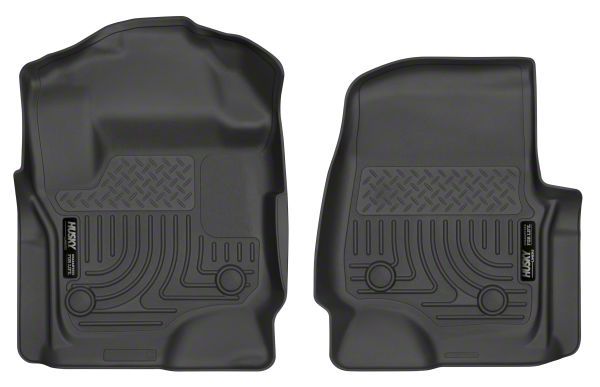 Excellent Coverage. Get amazing interior coverage with Husky's WeatherBeater Front Floor Liners; Black in your Super Duty. The 2 black liners are custom fit to your truck through a laser scanning process, with a patented Form-fit Edge for excellent carpet coverage and a finished look. The durable liner keeps your carpet from being soiled by everything from mud to spilled gasoline. Ridges and grooves in the hearty rubberized liners catch everyday messes and resist most chemicals, too.