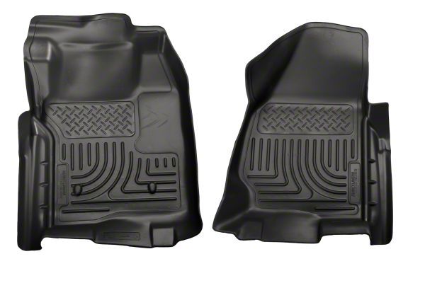 Excellent Coverage. Get amazing interior coverage with Husky's WeatherBeater Front Floor Liners; Black in your Super Duty. The 2 black liners are custom fit to your truck through a laser scanning process, with a patented Form-fit Edge for excellent carpet coverage and a finished look. The durable liner keeps your carpet from being soiled by everything from mud to spilled gasoline. Ridges and grooves in the hearty rubberized liners catch everyday messes and resist most chemicals, too.