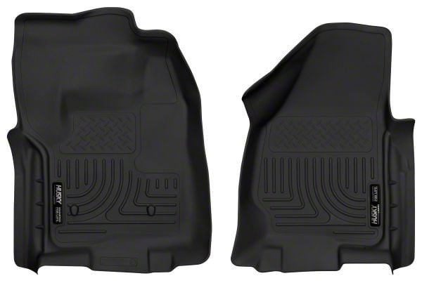 Excellent Coverage. Get amazing interior coverage with Husky's WeatherBeater Front Floor Liners; Black in your Super Duty. The 2 black liners are custom fit to your truck through a laser scanning process, with a patented Form-fit Edge for excellent carpet coverage and a finished look. The durable liner keeps your carpet from being soiled by everything from mud to spilled gasoline. Ridges and grooves in the hearty rubberized liners catch everyday messes and resist most chemicals, too.