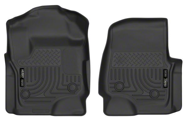 Protect Your Carpet. Representing the cutting edge of floor liner design, Husky's X-Act Contour Front Floor Liners; Black fit in the front floor area of your Super Duty. This liner fully contains liquids and other messes such as dirt and mud. It can even withstand more harmful liquids like battery acid, oil, and gas. It features durable Acring ribs that keeps liquid in dirt at the very bottom of the liner, keeping your shoes out of the liquid.