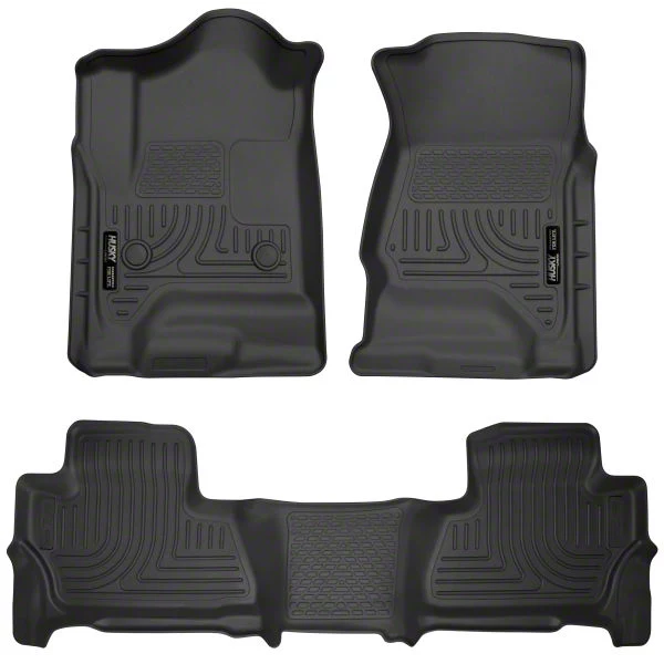 Protection. These Husky Liners WeatherBeater Front and Second Seat Floor Liners are made of unique thermoplastic material and built to survive even the most severe weather. The custom-molded build ensures a great fit and maximum coverage, while the black color offers your vehicle an upscale appearance. You may rest easy knowing that any spills or debris will be contained and won't harm your priceless carpets because of the liners that reach up the edges of the footwell.