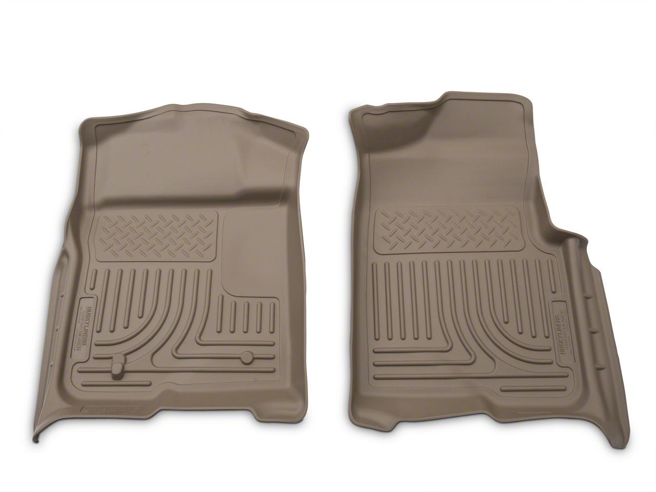 Application. This pair of tan Husky WeatherBeater Front Floor liners are specifically designed to fit all 2009 to 2014 Ford F-150 in all trims and cab sizes.