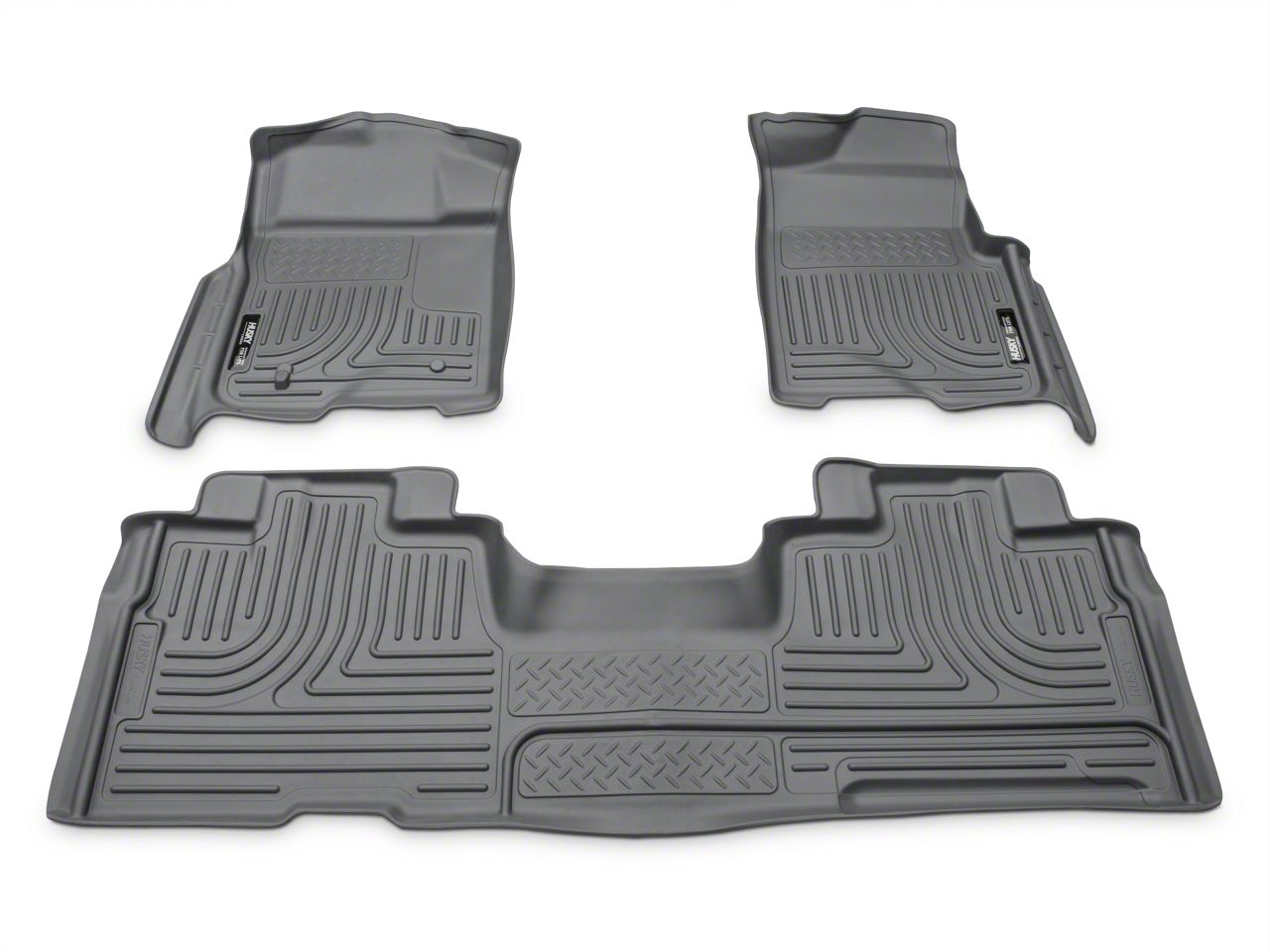 Application. This set of three gray Husky WeatherBeater Floor Liners are specifically designed to fit 2009-2014 Ford F-150 SuperCab or SuperCrew models.