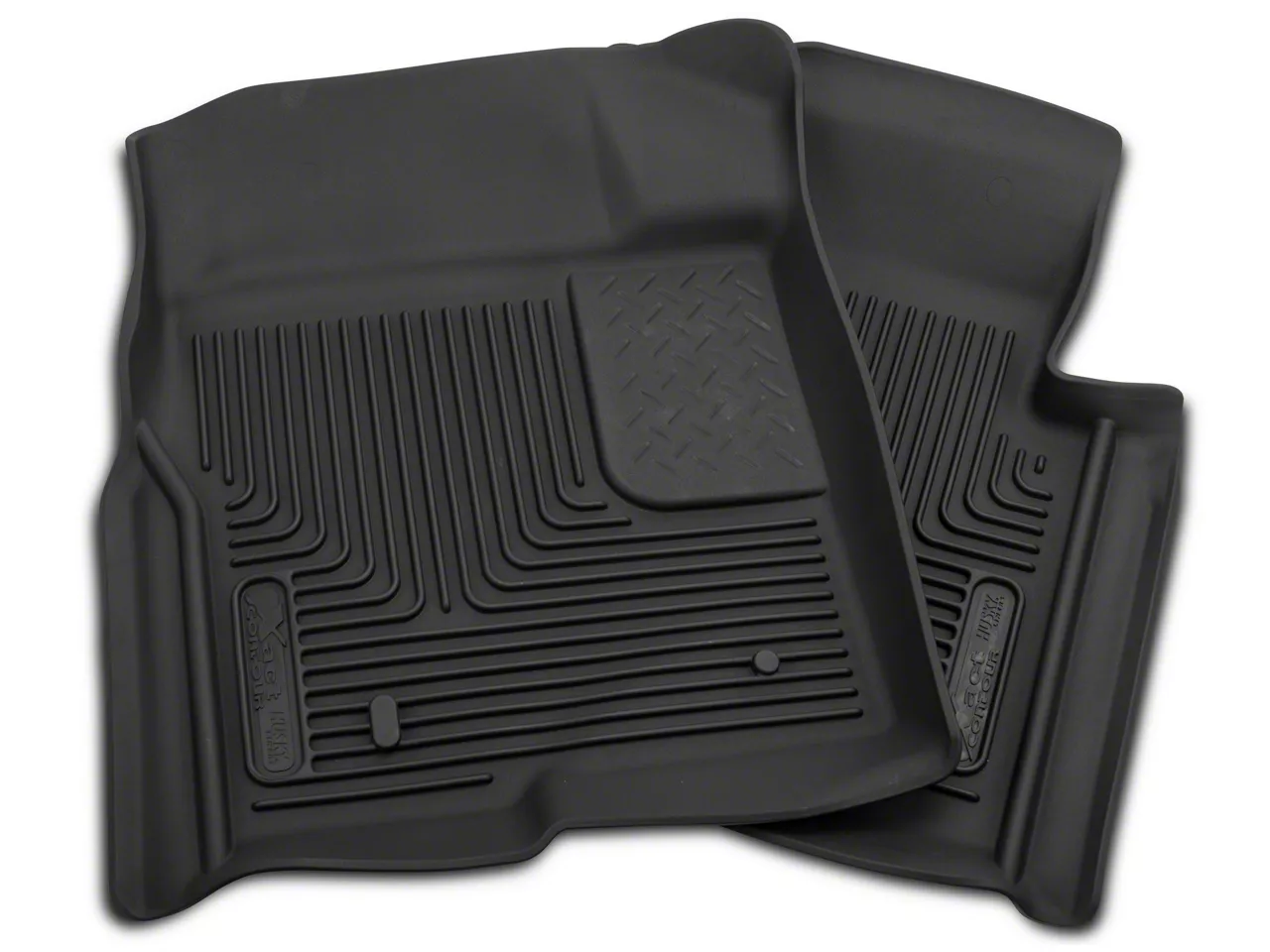 Protect Your Carpet. Representing the cutting edge of floor liner design, Husky's X-Act Contour mats fit in the front floor area of the 2009-2014 Ford F-150. This liner fully contains liquids and other messes such as dirt and mud. It can even withstand more harmful liquids like battery acid, oil, and gas. It features durable Acring ribs that keeps liquid in dirt at the very bottom of the liner keeping your shoes out of the liquid. made in the USA and ha features tough ribs to keep your shoes out of the liquid.