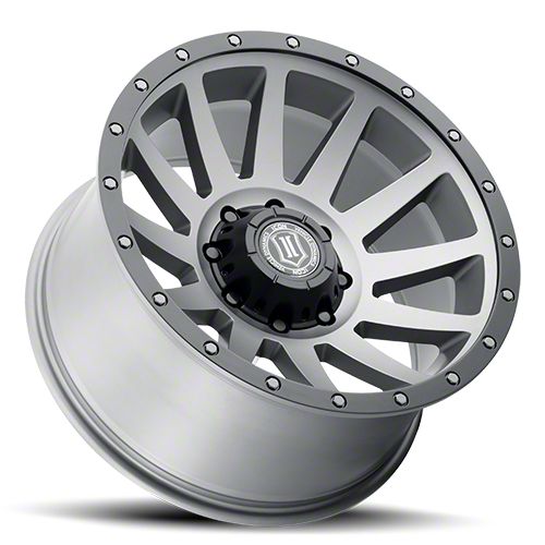 ICON Alloys Compression Titanium 8-Lug Wheel; 20x10; -2019mm Offset - Enhance your vehicle's style with the ICON Alloys wheel. This wheel's distinctive design and finish complement your vehicle's aesthetics, making a bold statement. It's crafted to accentuate the unique character of your car, emphasizing a premium and robust appeal.