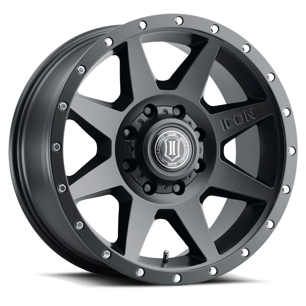 The 20x9 ICON Alloys Rebound Satin Black 8-Lug Wheel is coated with a specially formulated satin black finish. It protects the entire wheel against corrosion, while adding a stunning appeal to your ride’s appearance.