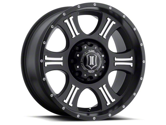 This 20x9 ICON Alloys Shield Satin Black Machined 8-Lug Wheel is completed in a high-quality satin black finish with machined accents that will be the envy of everyone. There's a durable clear coat that protects against driving hazards.