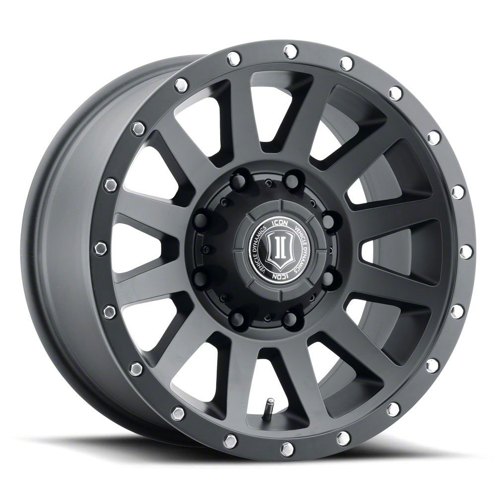 ICON Alloys Compression HD Satin Black 8-Lug Wheel; 18x9; 6mm Offset This ICON Alloys Compression HD Satin Black 8-Lug Wheel; 18x9; 6mm Offset brings a sleek and modern touch to your vehicle with its striking design. Its refined finish and bold styling make it an excellent choice for those looking to enhance their car’s visual appeal. Whether you're aiming for a sporty look or a more aggressive stance, this wheel stands out as a premium addition. Perfect for drivers who appreciate a stylish upgrade.