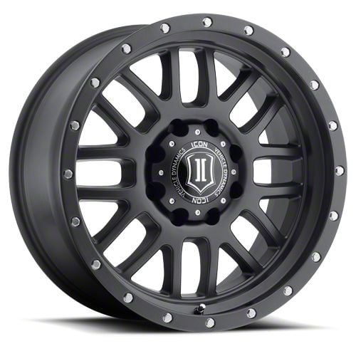 ICON Alloys Alpha Satin Black 8-Lug Wheel; 20x9; 12mm Offset: Redefine your vehicle's style with the ICON Alloys Alpha Satin Black 8-Lug Wheel. This wheel's elegant design and striking finish embody a blend of sophistication and boldness, perfectly complementing a wide array of vehicle aesthetics. Crafted from high-quality materials, it's a testament to durability and style.