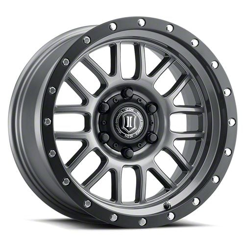 ICON Alloys Alpha Titanium 6-Lug Wheel; 17x8.5; 0mm Offset - Experience the sleek elegance of the ICON Alloys wheel. Its matte black finish adds a touch of sophistication to your vehicle, enhancing its overall appearance without compromising on durability. Perfect for a variety of vehicle styles, this wheel is a testament to the brand's commitment to quality and aesthetic excellence.