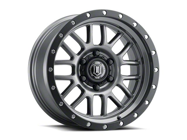 The 20x9 ICON Alloys Alpha Gunmetal 8-Lug Wheel is completed in a high-quality gunmetal gray finish, which looks great. Thanks to a durable clear coat, the finish also protects against the rigors of driving.