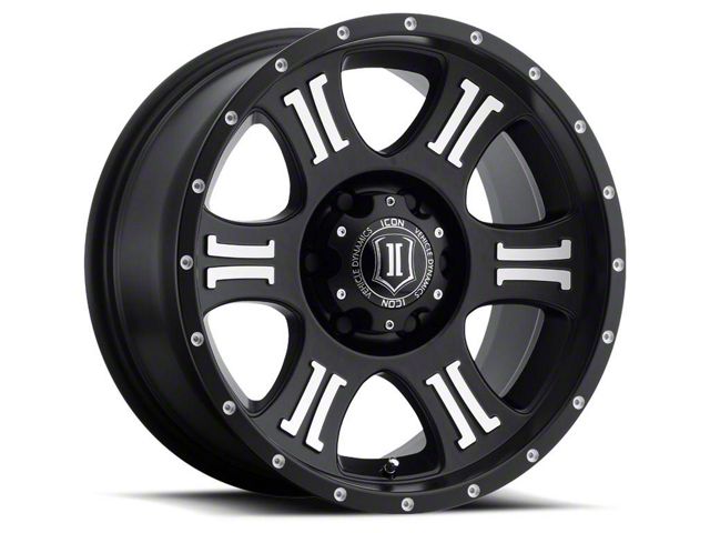 ICON Alloys Shield Satin Black Machined 8-Lug Wheel; 20x9; 0mm Offset exudes sophistication with its finish, offering a sleek and modern appeal to any vehicle it adorns. The design is meticulously crafted to enhance the aesthetic of your vehicle, giving it a distinctive and upscale look. Perfect for those seeking to elevate their vehicle's style, this wheel blends seamlessly with both contemporary and classic vehicle designs, making it a versatile choice for a wide range of vehicles. Its robust construction ensures durability, making it a reliable choice for drivers who value both style and quality.