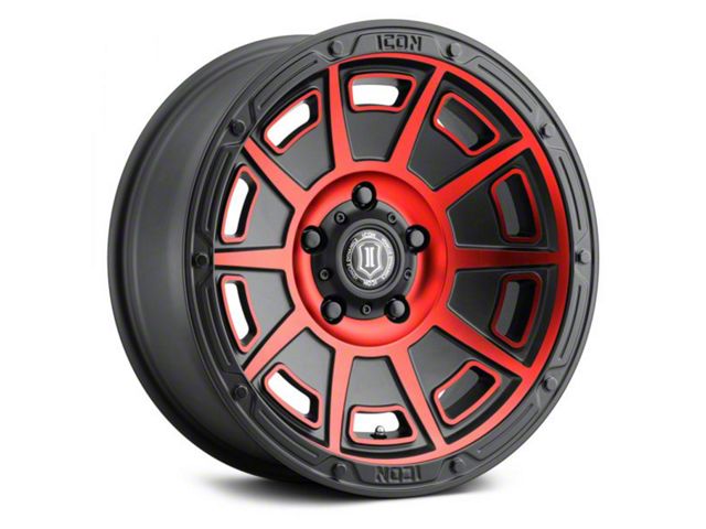 Satin Black Milled Finish with Red Tint. This ICON Alloys Wheel features a high quality, black finish with milled accents for a contrasting appearance that will make others green with envy. For added protection and good looks, this Wheel is completed in a durable, red tinted satin clear coat that is tough enough to stand up against the hazards of everyday driving - including road chips and pitting.