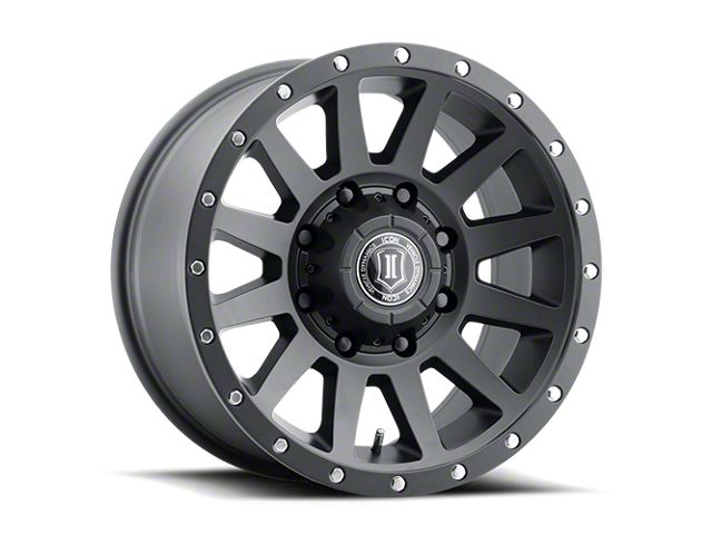 ICON Alloys Compression HD Satin Black 8-Lug Wheel; 18x9; 6mm Offset - Experience the sleek elegance of the ICON Alloys wheel. Its matte black finish adds a touch of sophistication to your vehicle, enhancing its overall appearance without compromising on durability. Perfect for a variety of vehicle styles, this wheel is a testament to the brand's commitment to quality and aesthetic excellence.