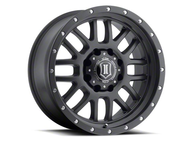 The 20x9 ICON Alloys Alpha Satin Black 8-Lug Wheel is completed in a high-quality satin black finish, which looks great. Thanks to a durable clear coat, the finish also protects against the rigors of driving.