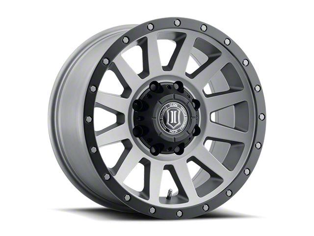 ICON Alloys Compression HD Titanium 8-Lug Wheel; 18x9; 6mm Offset - Experience the sleek elegance of the ICON Alloys wheel. Its matte black finish adds a touch of sophistication to your vehicle, enhancing its overall appearance without compromising on durability. Perfect for a variety of vehicle styles, this wheel is a testament to the brand's commitment to quality and aesthetic excellence.