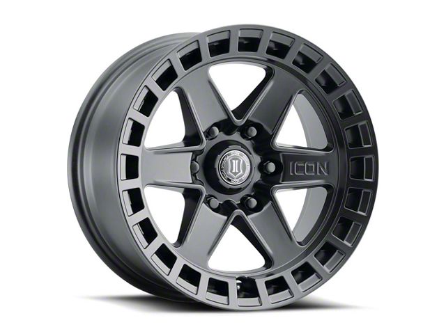 ICON Alloys Raider Satin Black 6-Lug Wheel; 17x8.5; 0mm Offset offers a sleek and modern design that enhances the visual appeal of any vehicle. Crafted with attention to detail, this wheel merges aesthetic elegance with a robust build, making it a fitting choice for those seeking a blend of style and durability.