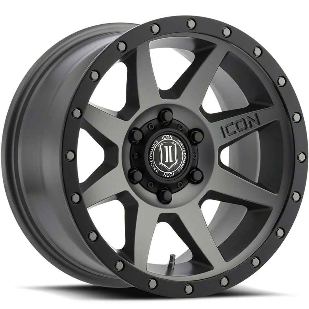 ICON Alloys Rebound Titanium 6-Lug Wheel; 18x9; 25mm Offset - Elevate your vehicle's style with this wheel's striking design. Reflecting the ICON Alloys' commitment to quality, it promises to add a touch of elegance and a strong character to your ride. Perfect for those seeking to make an impression without saying a word.