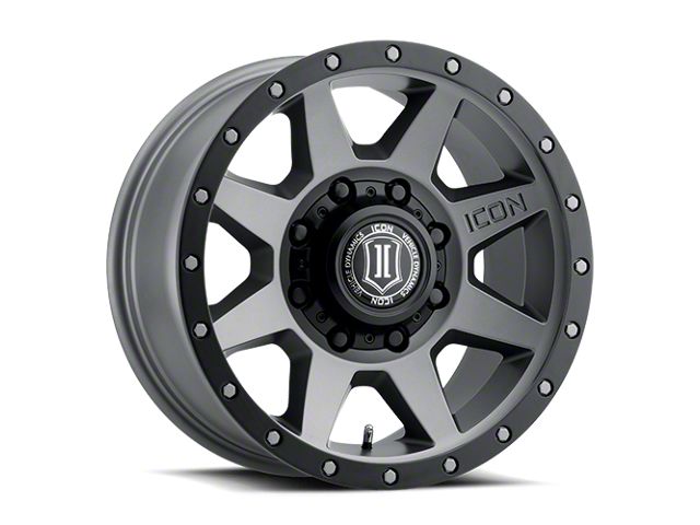 ICON Alloys Rebound HD Titanium 8-Lug Wheel; 18x9; 12mm Offset - Enhance your vehicle's style with the ICON Alloys wheel. This wheel's distinctive design and finish complement your vehicle's aesthetics, making a bold statement. It's crafted to accentuate the unique character of your car, emphasizing a premium and robust appeal.