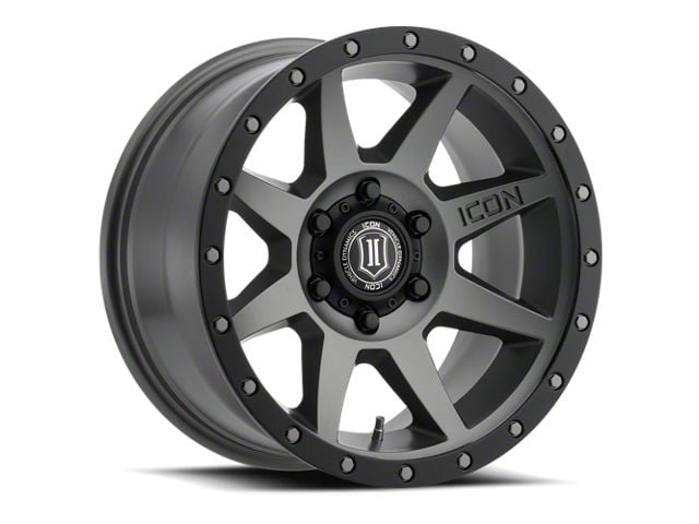 ICON Alloys Rebound Titanium 6-Lug Wheel; 18x9; 0mm Offset. The ICON Alloys Rebound Titanium 6-Lug Wheel offers a striking balance of style and refinement. Its unique design accentuates the vehicle's aesthetic, while the premium construction underscores its robust nature. This wheel is a perfect choice for those seeking both elegance and a strong visual statement.