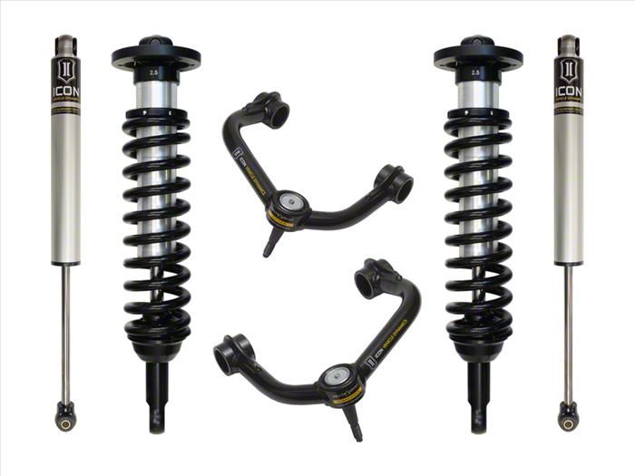 Premium Adjustable Lift System. The ICON Vehicle Dynamics 0 to 2.63-Inch Suspension Lift System with Tubular Upper Control Arms enhances ride quality, increases wheel travel, and provides lift adjustability without affecting towing capacity. Tuned specifically for the 4WD F-150, this system improves both on-road comfort and off-road performance. It's a high-end suspension solution for drivers who demand versatility and durability.