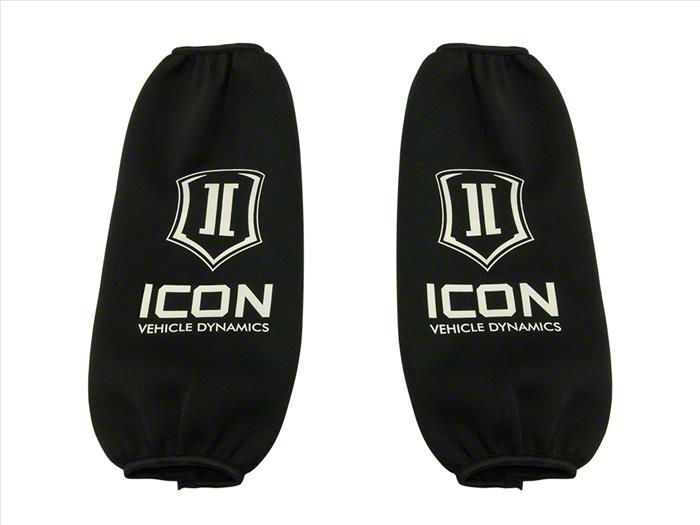 Description. ICON Shock Wraps are a must have for vehicles that see Extreme Weather Conditions or Dirty / Muddy Off-Roading more often then not. These neoprene coil over shock protection covers offer an added layer of resistance keeping dirt, mud, grime, snow, harsh road salts / spray's and rocks from getting to the shock shafts or seals. This added layer of protection helps prevent damage like shaft pitting and cut seals that require you to have your shocks rebuilt prematurely. ICON Shock Wraps velcro on in seconds, and have a nice form fit with elastic banded ends to give you the most protection possible.