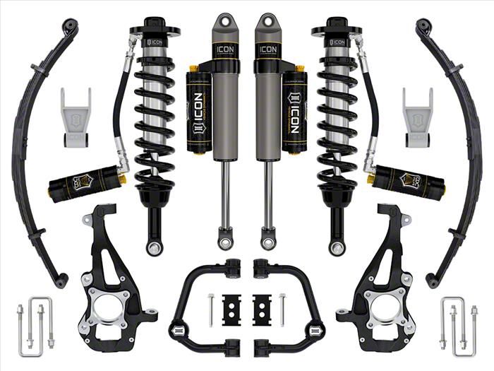 Enhanced Suspension Performance. The ICON Vehicle Dynamics 3.50 to 4.50-Inch Suspension Lift System with Tubular Upper Control Arms and Leaf Pack is designed to significantly increase your vehicle's ride height. This Stage 4 system enhances both off-road performance and on-road handling, allowing for the installation of larger, more aggressive tires.