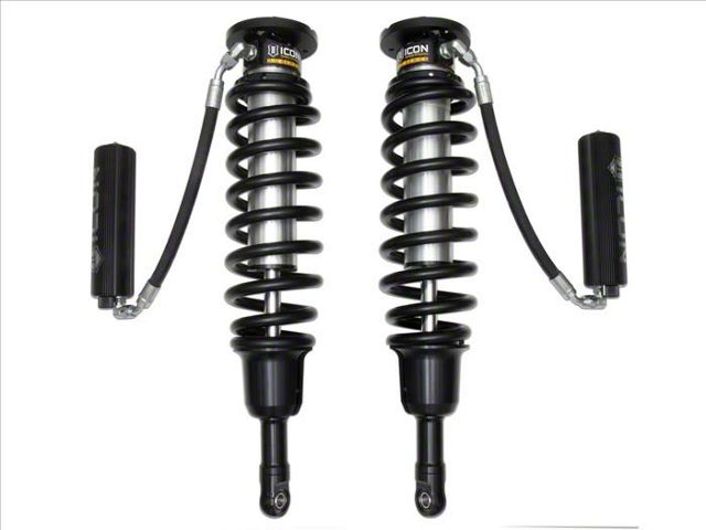Description. The front end geometry of the Gen 2 Raptor was found to be fairly similar to the previous model truck, however the shock mounting points had been moved higher up on the chassis. Seeing this as an opportunity, the team was able to design a 3.0 Series coilover that has more shaft travel while utilizing a barreled coil spring for more efficient packaging. The vehicle-specific valving featured in these shocks and the all new ICON-engineered spring work together to provide exceptional on-road ride quality with excellent off-road characteristics. ICONs multi-stage hydraulic Bump Zone adds to the performance capability by providing an exponential increase in damping ability during the last 40% of compression travel for superior bottom-out resistance. In the ride zone, these 3.0 Series coilovers see a 50% increase in damping ability with the use of a significantly larger piston than what is found in the factory shocks. New 10 finned aluminum reservoirs provide a generous amount of shock oil while also providing an increase in surface area for enhanced cooling and consistent damping. The addition of ICONs CDC Valve technology provides 10 settings of damping adjustment allowing the end-user to adjust the feel of the shocks for different terrains and vehicle cargo configurations. All of these features work together to deliver the perfect blend of on-road comfort and off-road performance.