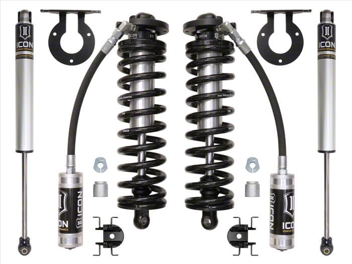 Superior Ride Quality. Elevate the performance and handling of your F-250 Super Duty with the ICON Vehicle Dynamics 2.50 to 3-Inch Coil-Over Conversion System; Stage 1. At the heart of this system are the high-performance coil-over shocks, offering adjustable height from 2.50 to 3 inches. This flexibility allows you to tailor your truck's stance for optimal performance, whether you're navigating tough off-road trails or cruising on the highway.