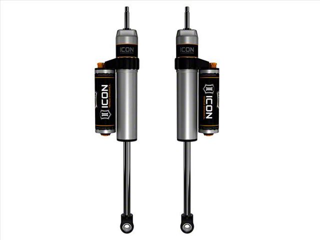 Description. ICON Vehicle Specific (V.S.) 2.5 Aluminum Series shocks are designed and built to give your vehicle outstanding performance off-road and a smooth ride on the street. These shocks are configured specifically for each application in both length and damping tune. Like all ICON'S Shock Absorbers, V.S. 2.5 Aluminum Series shocks are 100% rebuildable and 100% revalveable. For piggyback and specific remote reservoir applications, ICON'S unique use of a 6061 billet aluminum manifold a few inches below the top cap of the shock creates an internal Bump Zone that when used creates an additional 20% of damping force. This additional force helps prevent harsh bottom outs and controls the suspension when compressing at high velocity. The ICON CDC Valve is an externally adjustable valve that restricts oil flow into the reservoir which creates 10 levels of compression damping force ranges.