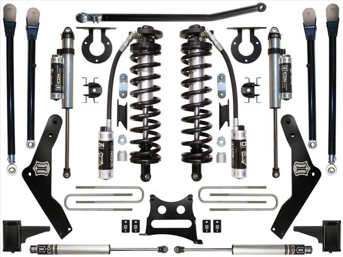 This 4.5" System for the 2011-2016 Super Duty is one the best riding suspension systems ICON has ever developed. This system has been engineered using the highest quality materials and components. The dual rate front coil springs combined with our ICON 2.5 Aluminum Series CDCV shocks give these trucks the performance they so desperately need. This system comes complete with front coils, shocks, radius arm drop down brackets, rear blocks and U-bolts and our patented adjustable track bar giving the front end of these trucks perfect track alignment. The Stage 4 system also includes shocks that feature the ICON Compression Damping Control Valve (CDCV) and our radius arm system for the ultimate in shock technology and suspension technology.