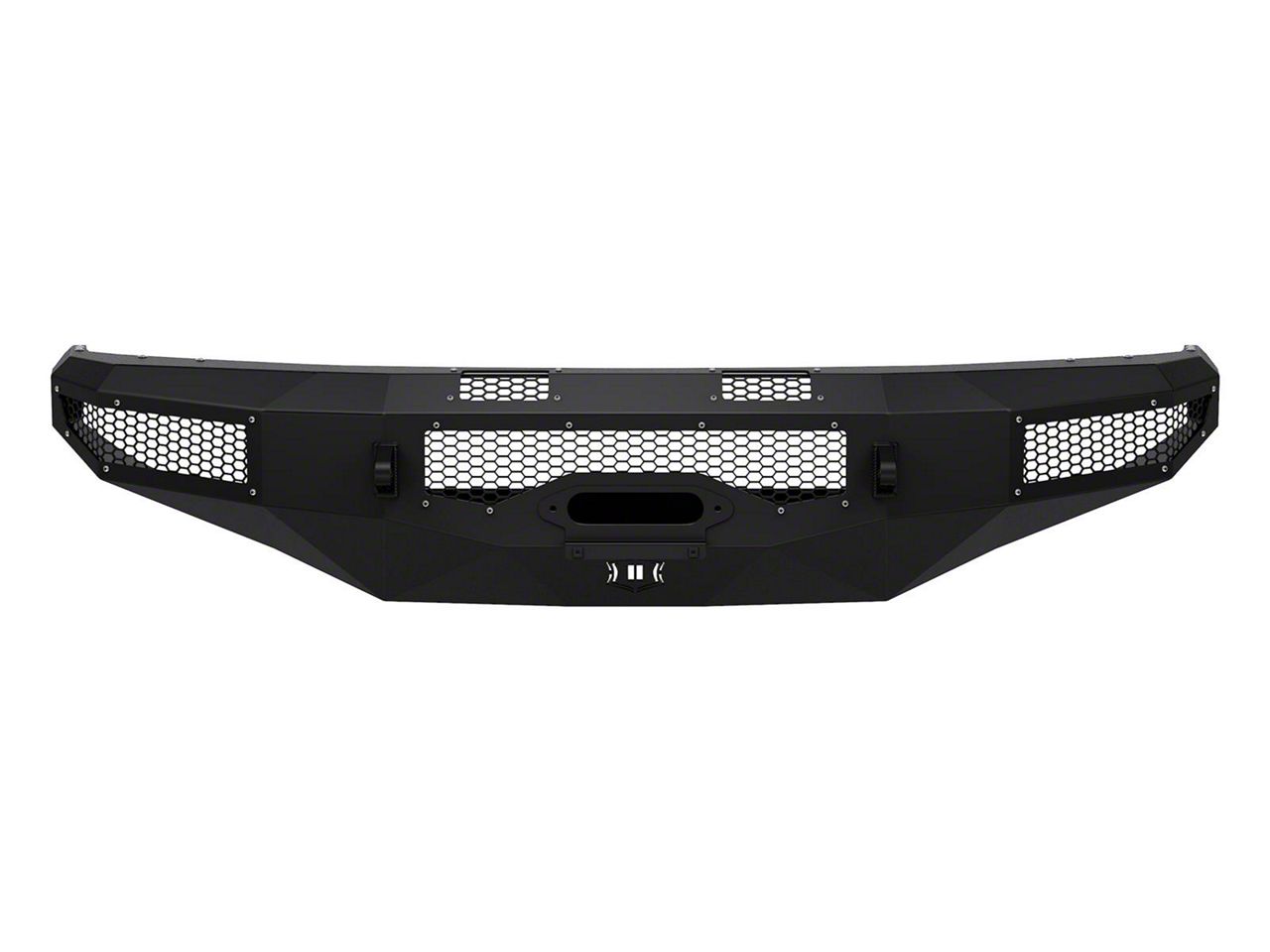 Winch and Light-Ready Design. The bumper is equipped with a universal winch mount, designed to accommodate a wide range of winches, up to 12,000 pounds for recovery and towing applications, ensuring you're always prepared for challenging off-road situations. Featuring mounts for auxiliary lights or light bars, this bumper enables you to customize your lighting setup for improved visibility and safety in low-light conditions.