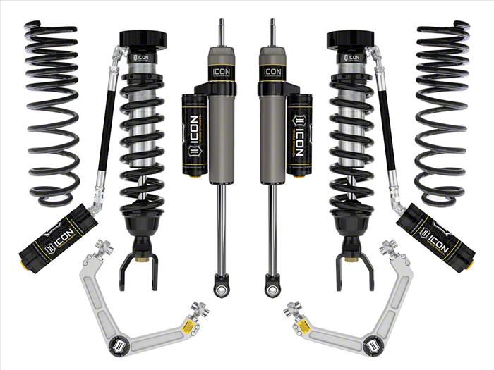 Massive Carrying Enhancement. The ICON Vehicle Dynamics 2 to 3-Inch Suspension Lift System with Billet Upper Control Arms is made to support your vehicle's substructure, giving you over 2000 pounds of extra weight carriage and cargo handling, meeting your heavy-loaded demands.