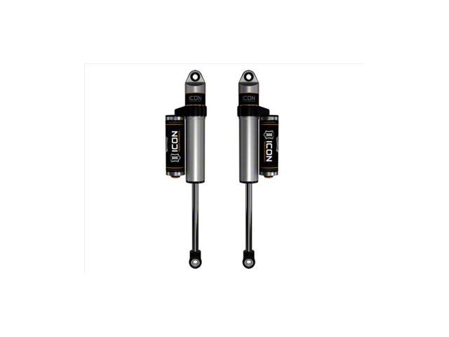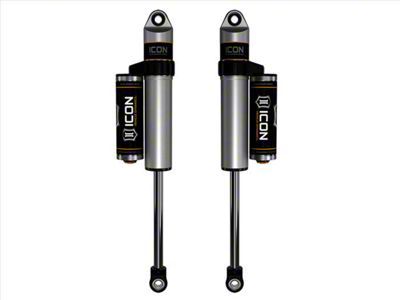 Description. ICON Vehicle Specific (V.S.) 2.5 Aluminum Series shocks are designed and built to give your vehicle outstanding performance off-road and a smooth ride on the street. These shocks are configured specifically for each application in both length and damping tune. Like all ICON'S Shock Absorbers, V.S. 2.5 Aluminum Series shocks are 100% rebuildable and 100% revalveable. For piggyback and specific remote reservoir applications, ICON'S unique use of a 6061 billet aluminum manifold a few inches below the top cap of the shock creates an internal Bump Zone that when used creates an additional 20% of damping force. This additional force helps prevent harsh bottom outs and controls the suspension when compressing at high velocity. If you are looking for a more user defined tune, consider looking into the Compression Damping Control Valve (CDCV) shocks.