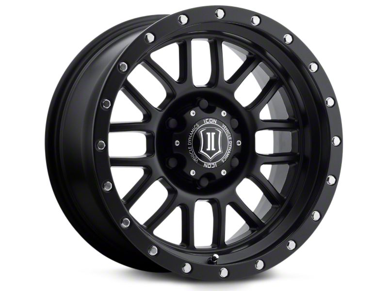 Ideal Off Road Ride. Don't skimp on your 2002-2018 Dodge RAM 1500's wheels; instead, install ICON Vehicle Dynamics' Alpha Satin Black 5-Lug Wheel 17x8.5 for superior form and function. This wheel not only looks majorly aggressive, but it also stands up to the most difficult conditions with its unbeatable durability. Perfect for your off road adventures, this wheel is just as tough as it looks as its maximum caliper clearance and optimal wheel position work to ensure the suspension and steering function are in ideal condition for difficult trails, hills, and valleys. By reducing unsprung weight, scrub radius, and rotating mass, this wheel provides that terrific handling and ride quality you've been searching for.