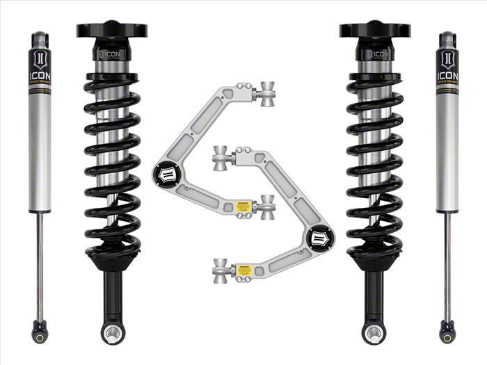 Enhanced Suspension Performance. The ICON Vehicle Dynamics Suspension Lift System is designed to significantly improve the suspension performance of your 2023-2026 Canyon models, excluding AT4X models. This Stage 2 system includes billet upper control arms, shocks, and coilovers, providing a comprehensive upgrade for better ride quality and increased wheel travel.