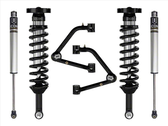 Enhanced Performance. The ICON Vehicle Dynamics 1.75 to 2.50-Inch Suspension Lift System with Tubular Upper Control Arms improves wheel travel and ride quality, retaining the vehicle's towing capacity. This system offers superior damping and control, making it ideal for off-road enthusiasts.