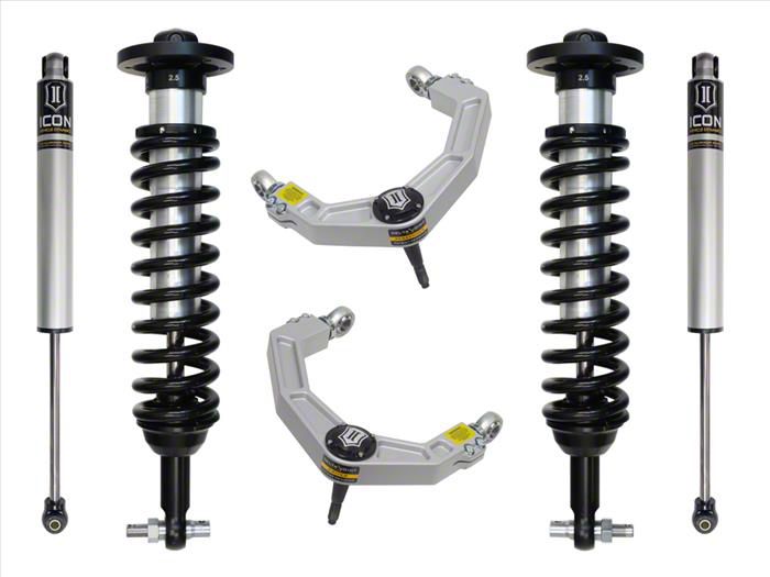 Vehicle Control. This ICON Vehicle Dynamics 0 to 2.75-Inch Suspension Lift System with Billet Upper Control Arms; Stage 2 will improve your F-150's vehicle control both on or off road. Your truck will benefit from this lift tremendously thanks to better damping.