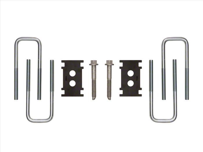 Construction and Appearance. Built from heavy-duty materials, the ICON hardware kit includes robust U-bolts and all necessary hardware for a complete installation. Each component is precision-engineered to match ICON’s suspension specifications, ensuring lasting strength and a dependable connection between the leaf springs and axle. The kit's clean, high-performance finish complements the rugged suspension system.