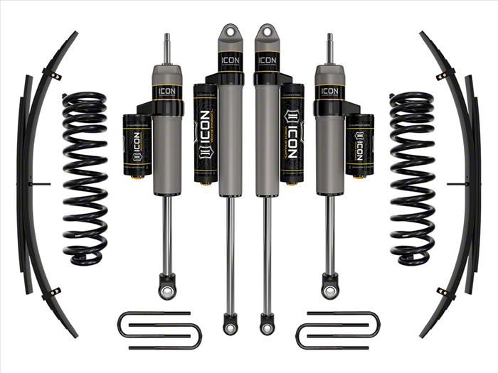 Premium-Grade Suspension Lift System. The ICON Vehicle Dynamics 2.50-Inch Suspension Lift System with Expansion Pack and Piggyback Shocks (Stage 2) is designed to enhance the off-road capability and overall ride quality of your 4WD 6.7L Powerstroke Ford F-250 Super Duty. This lift system provides a 2.50-inch increase in ride height, allowing for larger tires and improved ground clearance, making it perfect for both rugged terrains and everyday use.