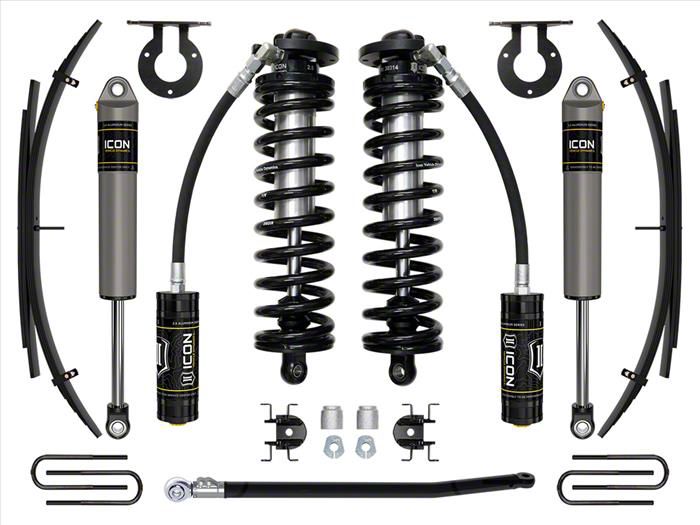 The ICON 2.5-3” coilover conversion suspension system is a great way to lift your 4WD 2011-2016 Ford F-250/F-350 Super Duty while improving ride quality and performance. This upgraded Stage 2 system is great for towing, rough construction site terrains, and country dirt roads all while keeping a smooth highway feel. ICON's Stage 2 System is comprised of 2.5 Series remote reservoir coilovers that are adjustable from 2.5-3” of front lift over stock, adjustable front track bar with massive FK rod end, alignment cams for adding caster, rear leaf spring expansion packs with blocks and U-bolts for a more compliant ride and reduced axle wrap, and ICON 2.5 Aluminum Series internal reservoir rear shocks. With the endless hours ICON has spent testing and tuning our suspension components and shocks as a complete package, you can rest assured you have the best suspension solution on the market.