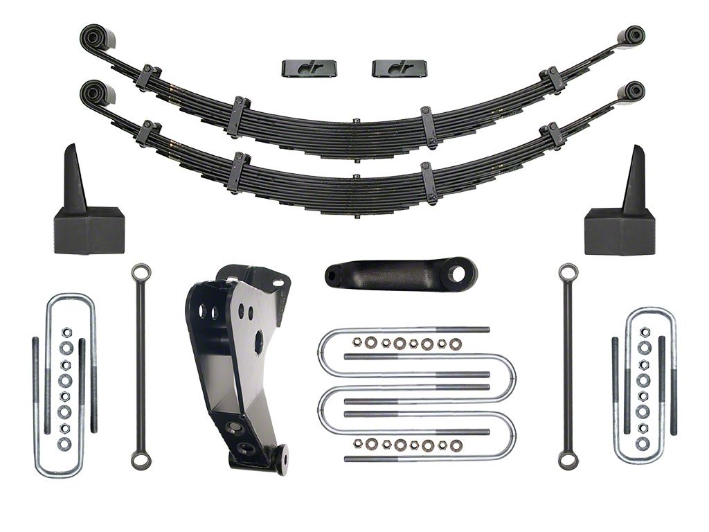 Construction and Appearance. Featuring high-strength leaf springs and heavy-duty lift blocks, each component is finished with corrosion-resistant coatings for longevity in harsh conditions. The system is designed to optimize load handling, improve articulation, and maintain ride comfort both on and off the trail.
